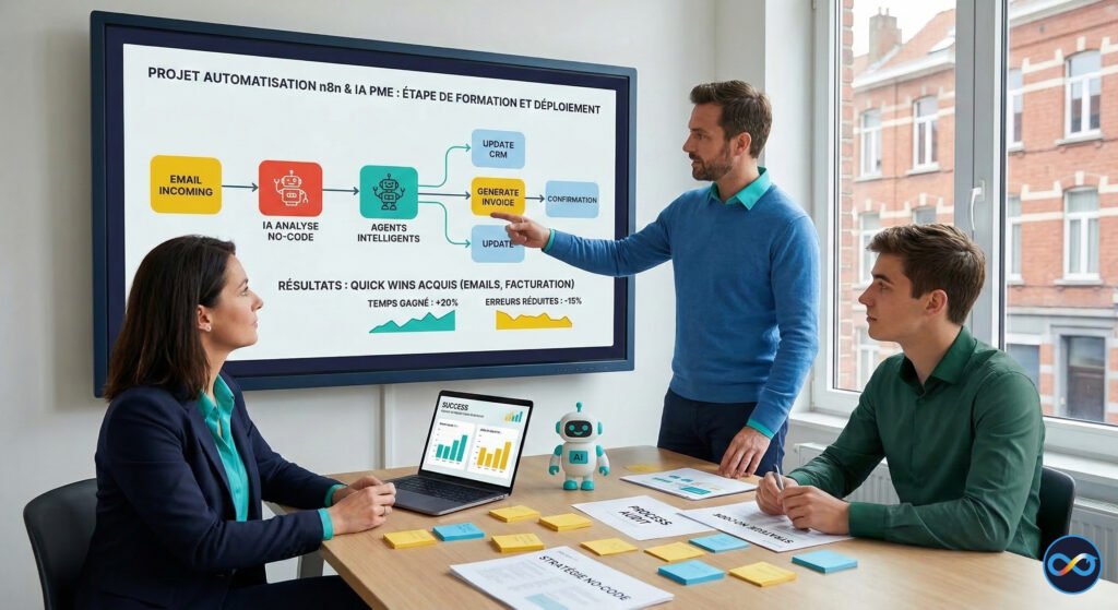 3. Déploiement de quick wins : commencez par des automatisations simples sur les outils existants pour démontrer rapidement la valeur.